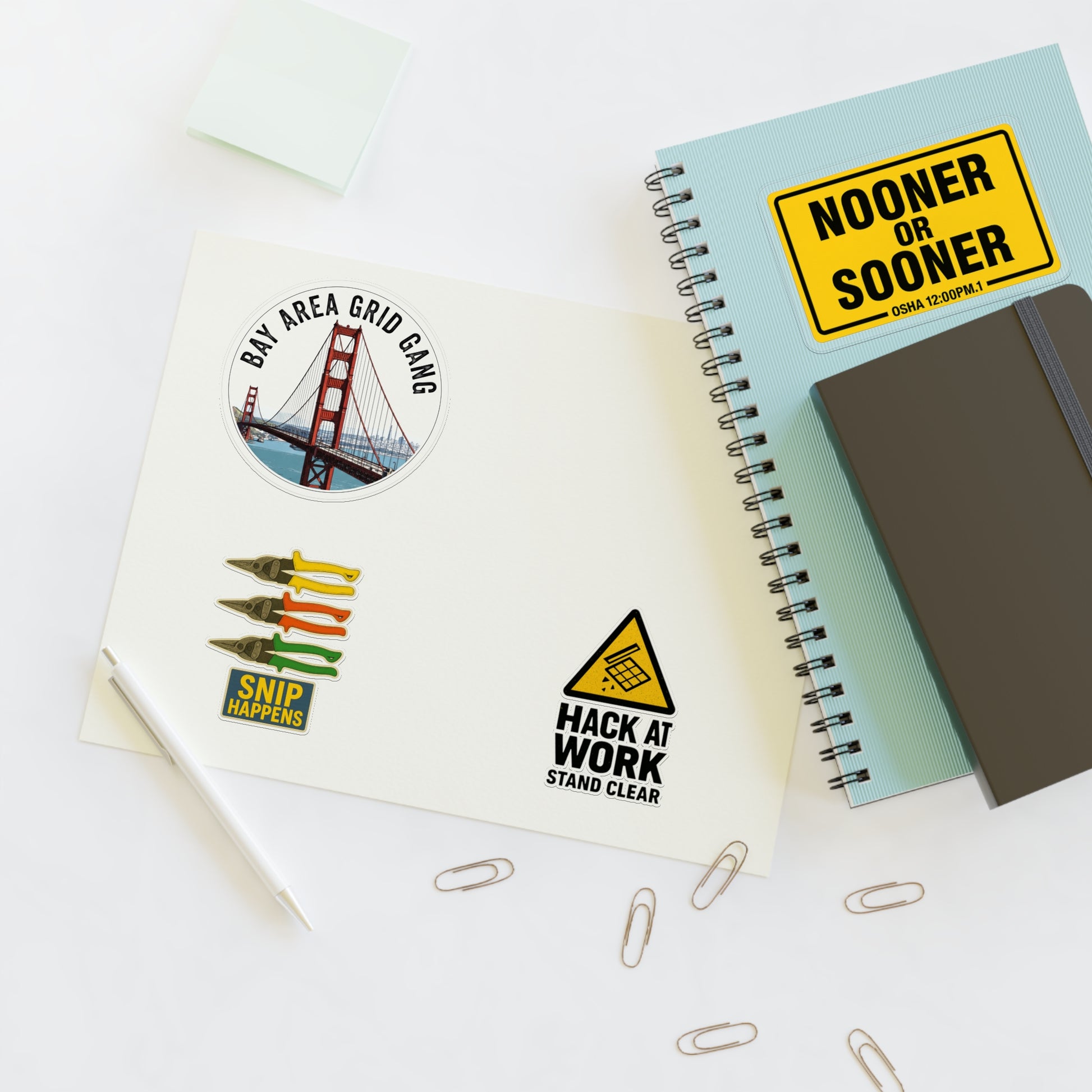 Built for hard hats, tool cases, gang boxes, laptops, and anywhere else that needs a little Bay Area attitude.