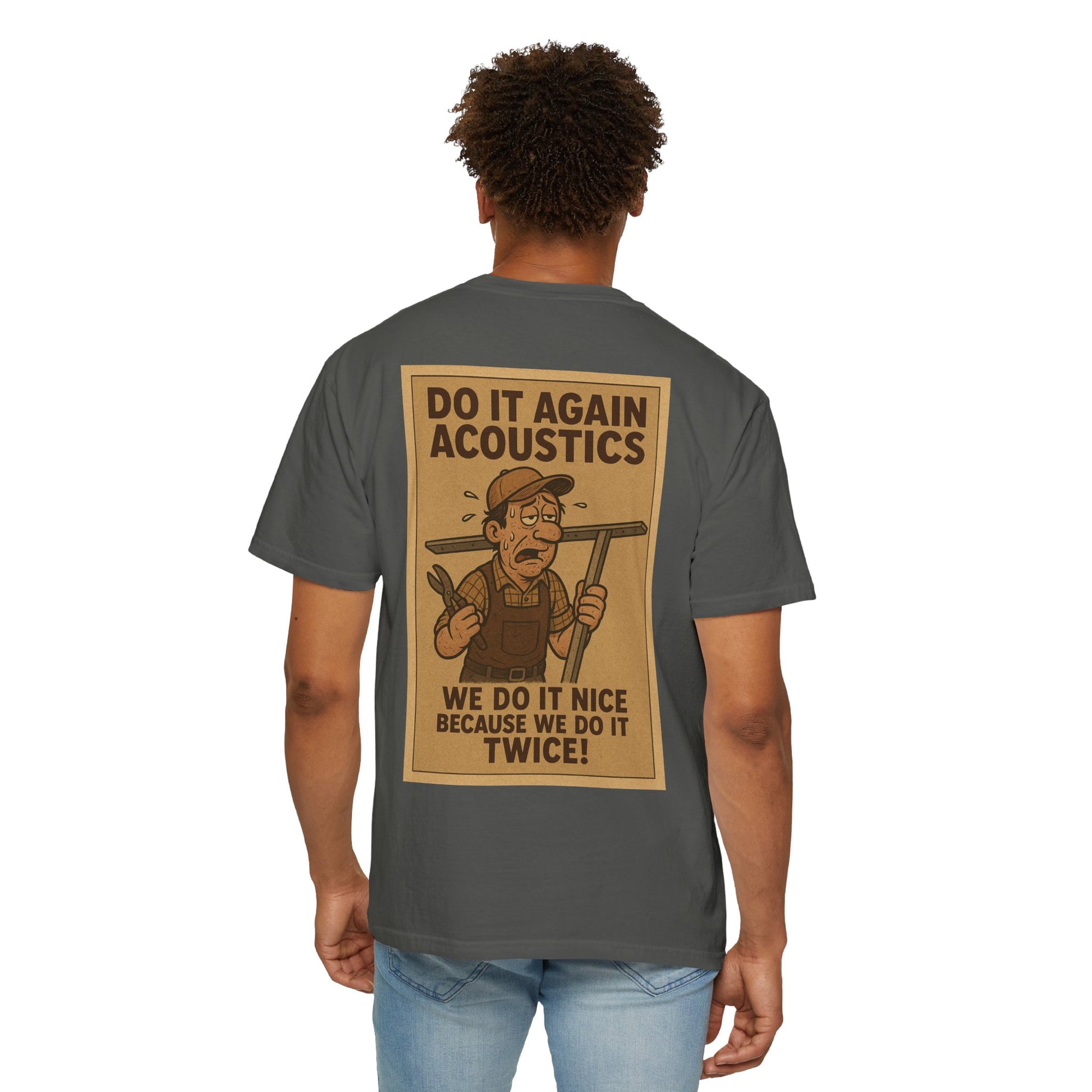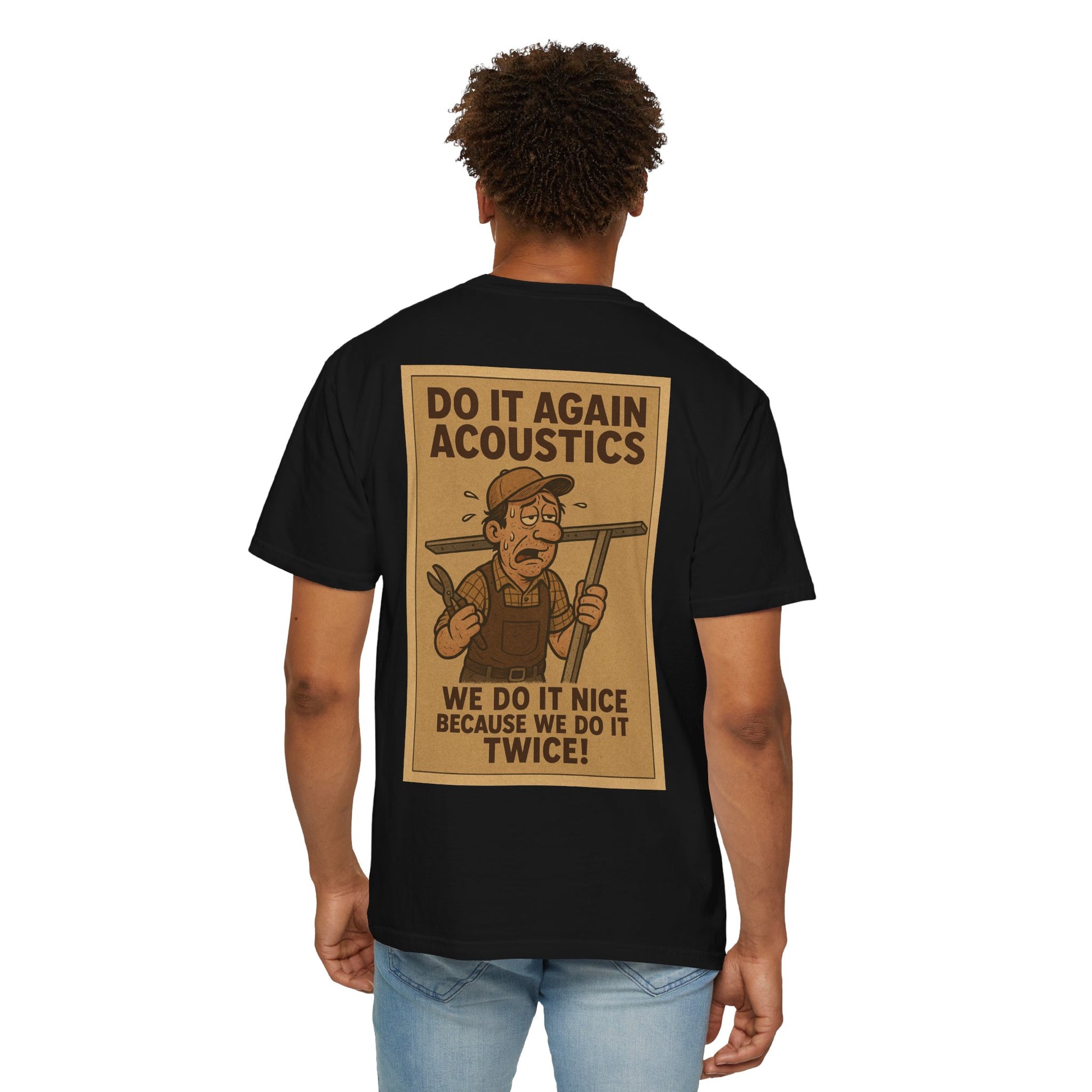 “Do it again Acoustics. We do it nice because we do it twice!” Shirt
