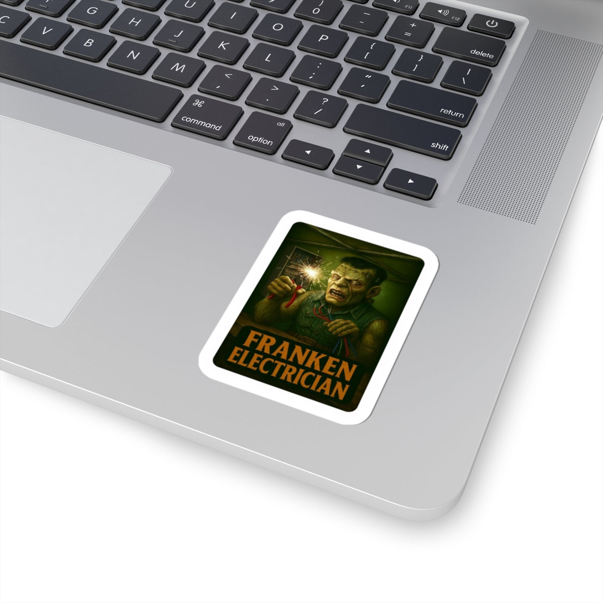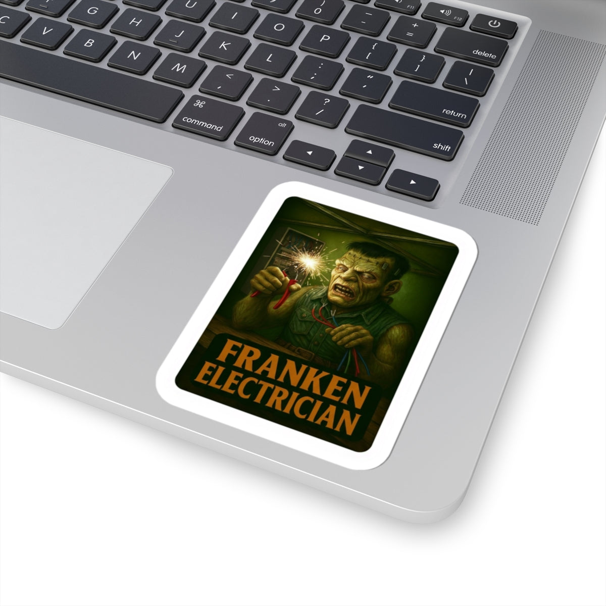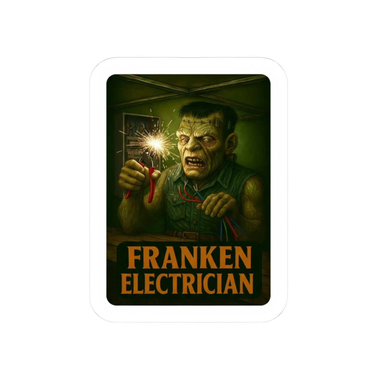 Frankenstein Electrician Monster themed stickers that give a quirky and fun vibe. Perfect for adding a unique touch to laptops, journals, windows, and more. Relevant for Halloween, electricians, and monster lovers.
