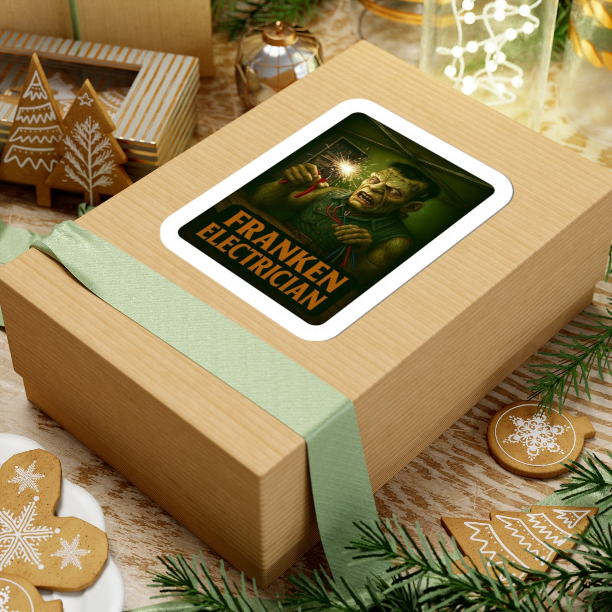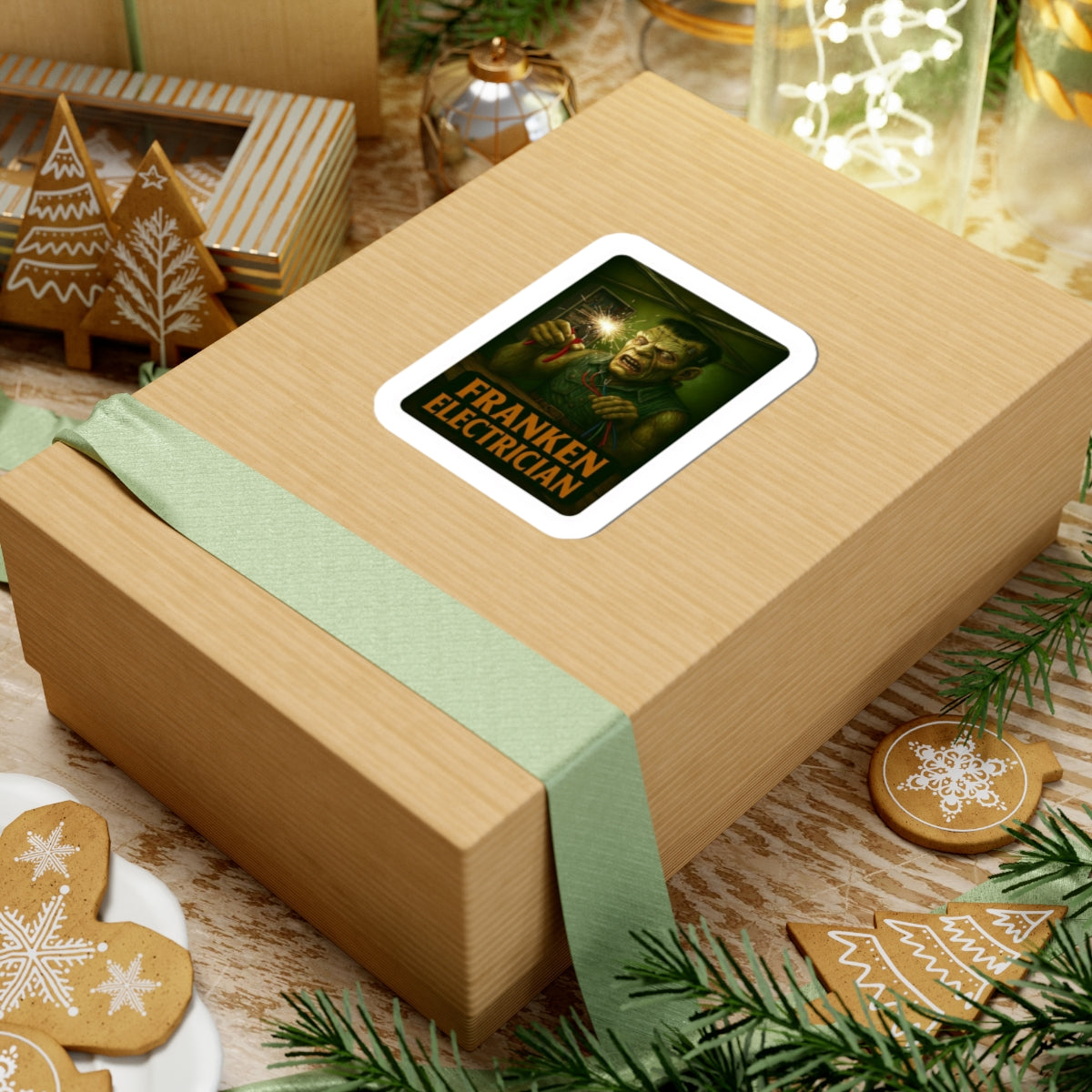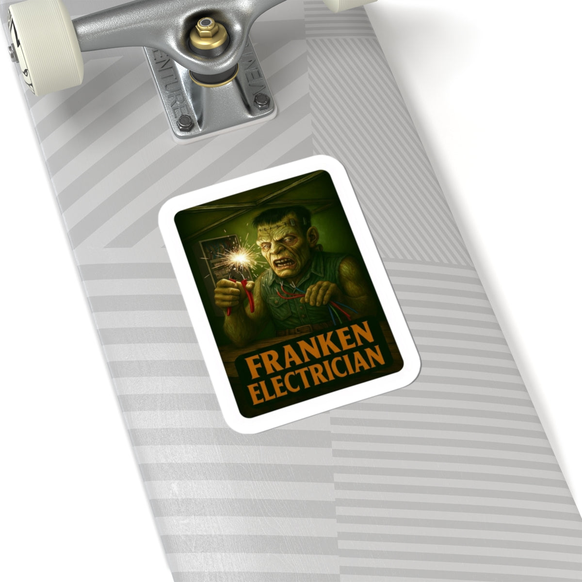 Frankenstein Electrician Monster themed stickers that give a quirky and fun vibe. Perfect for adding a unique touch to laptops, journals, windows, and more. Relevant for Halloween, electricians, and monster lovers.
