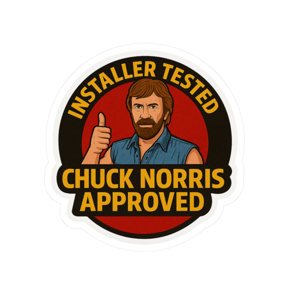 “Installer Tested. Chuck Norris Approved” with thumbs up approval - Sticker