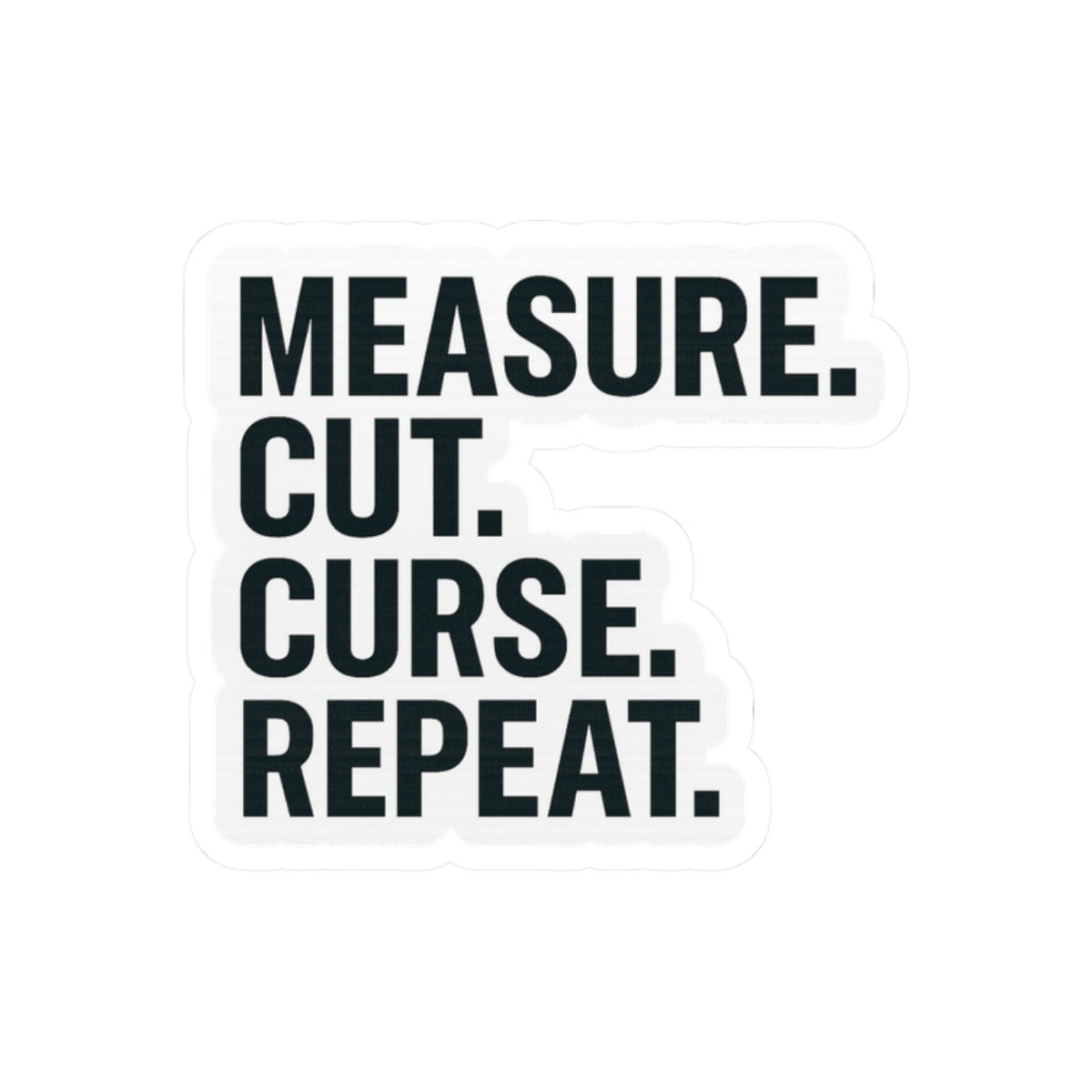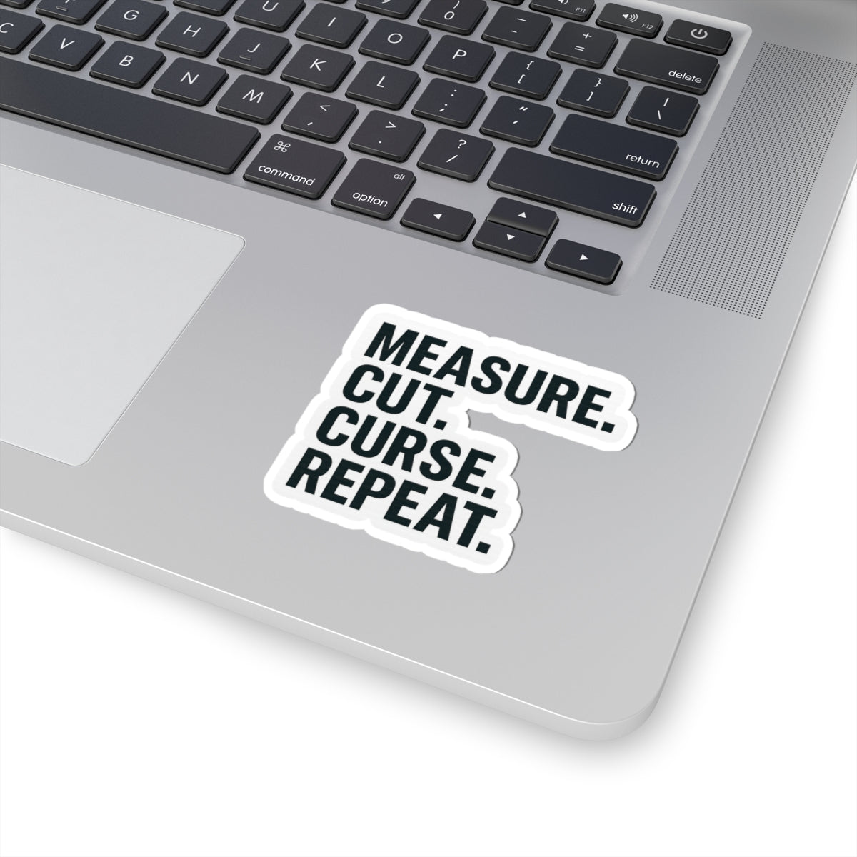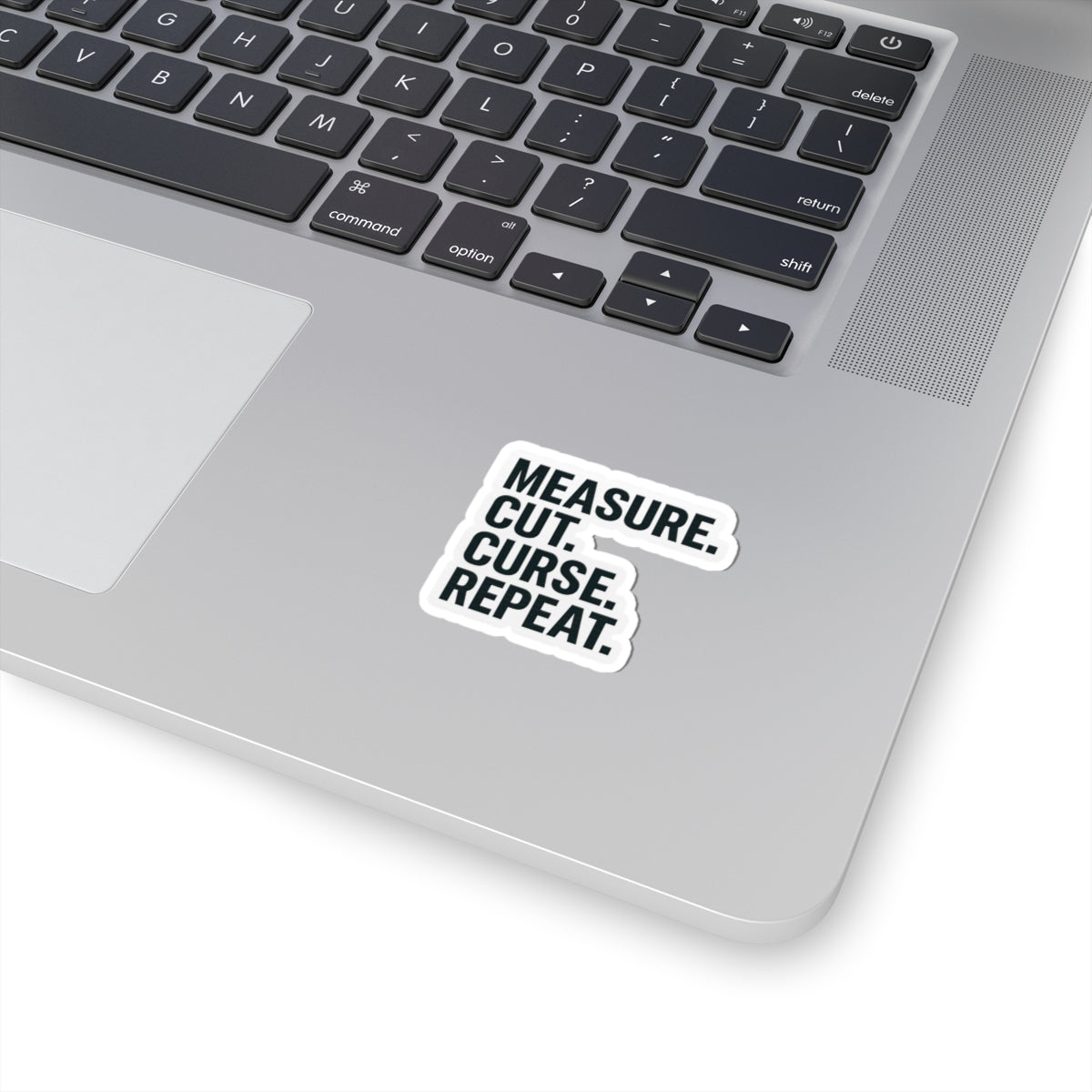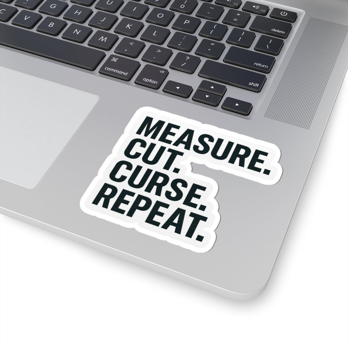 “Measure, Cut, Curse, Repeat” kiss-cut sticker