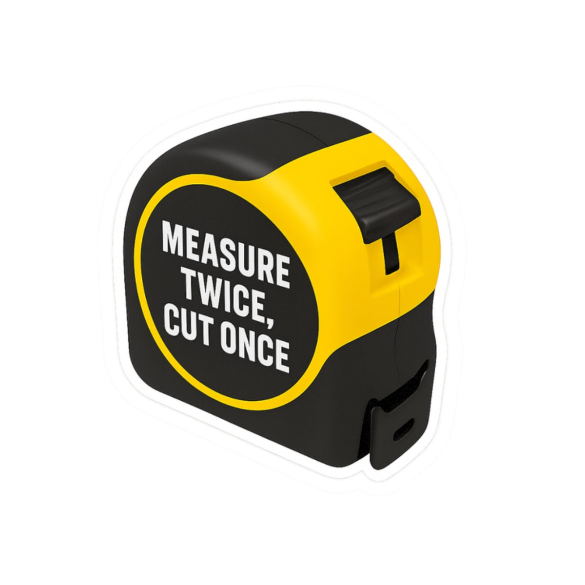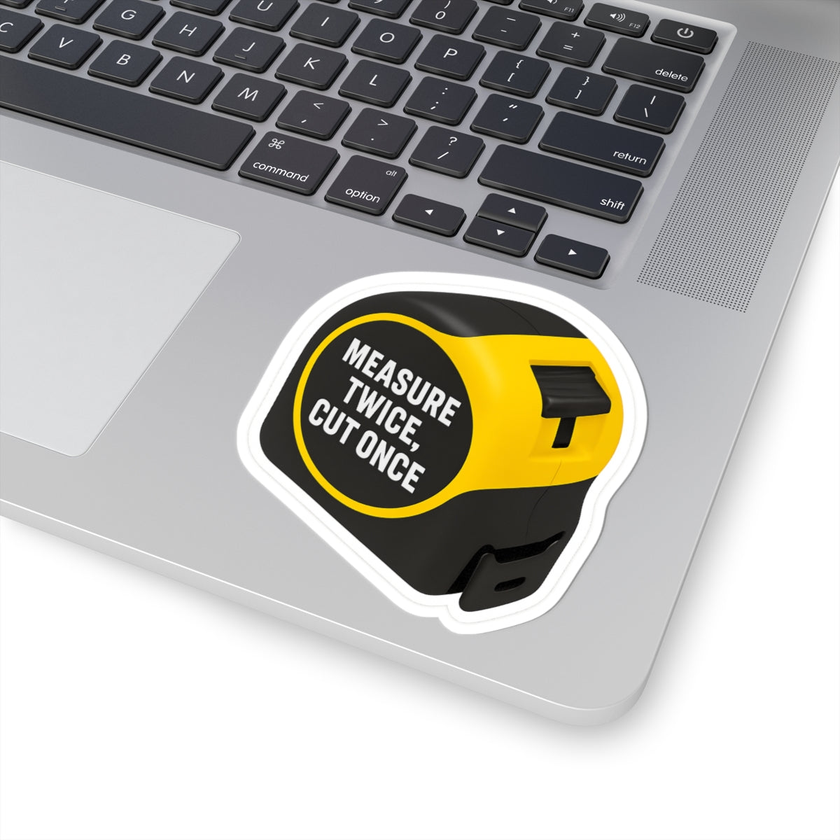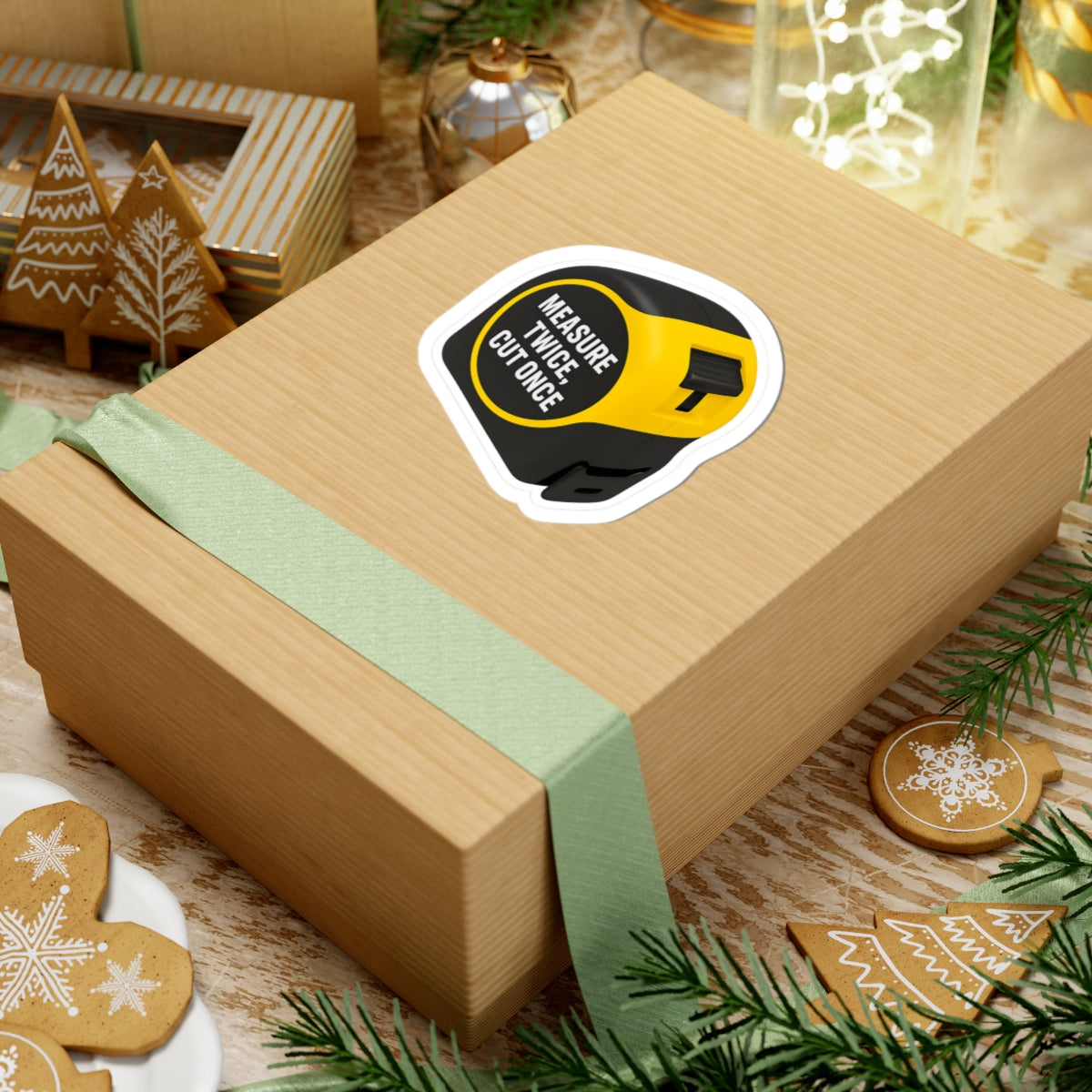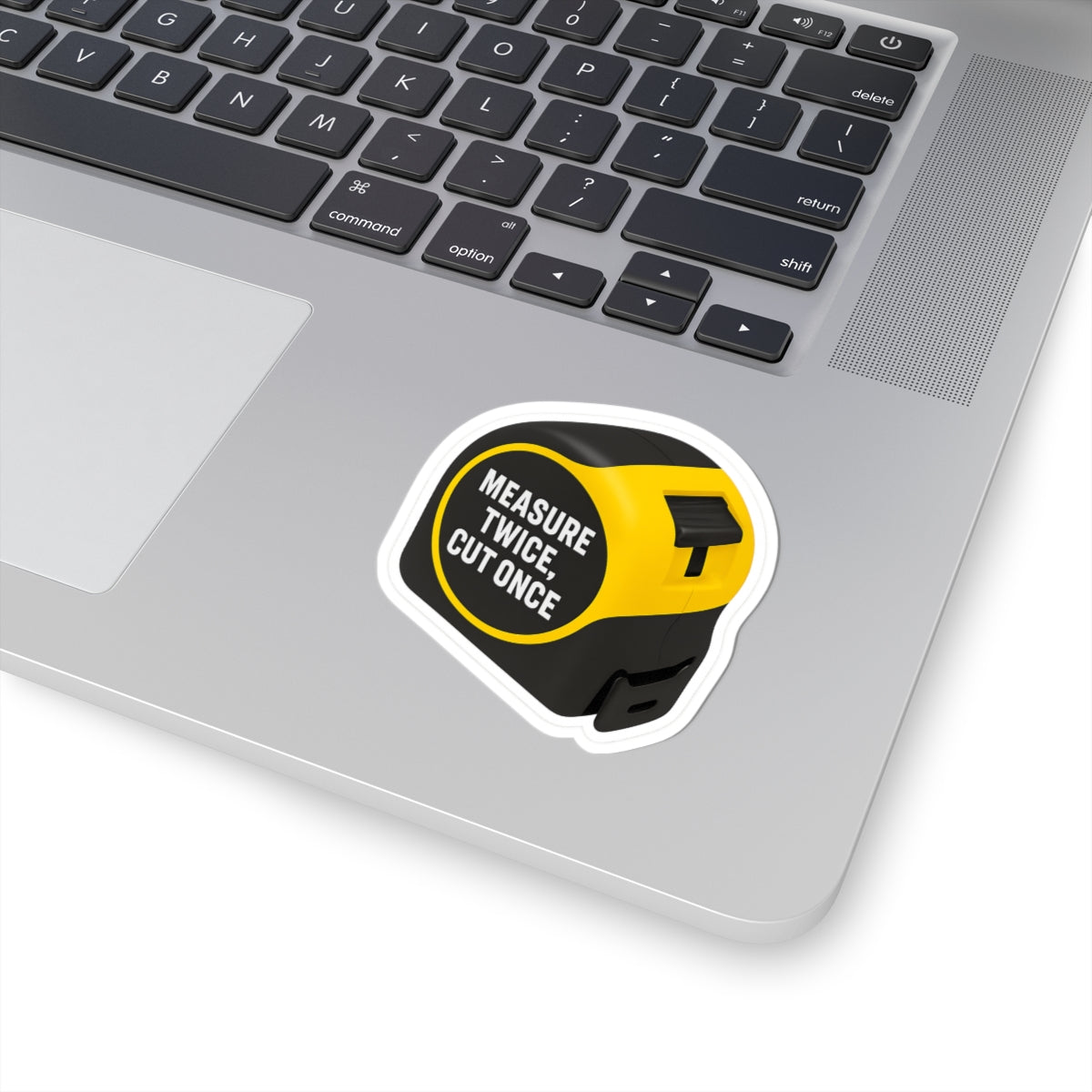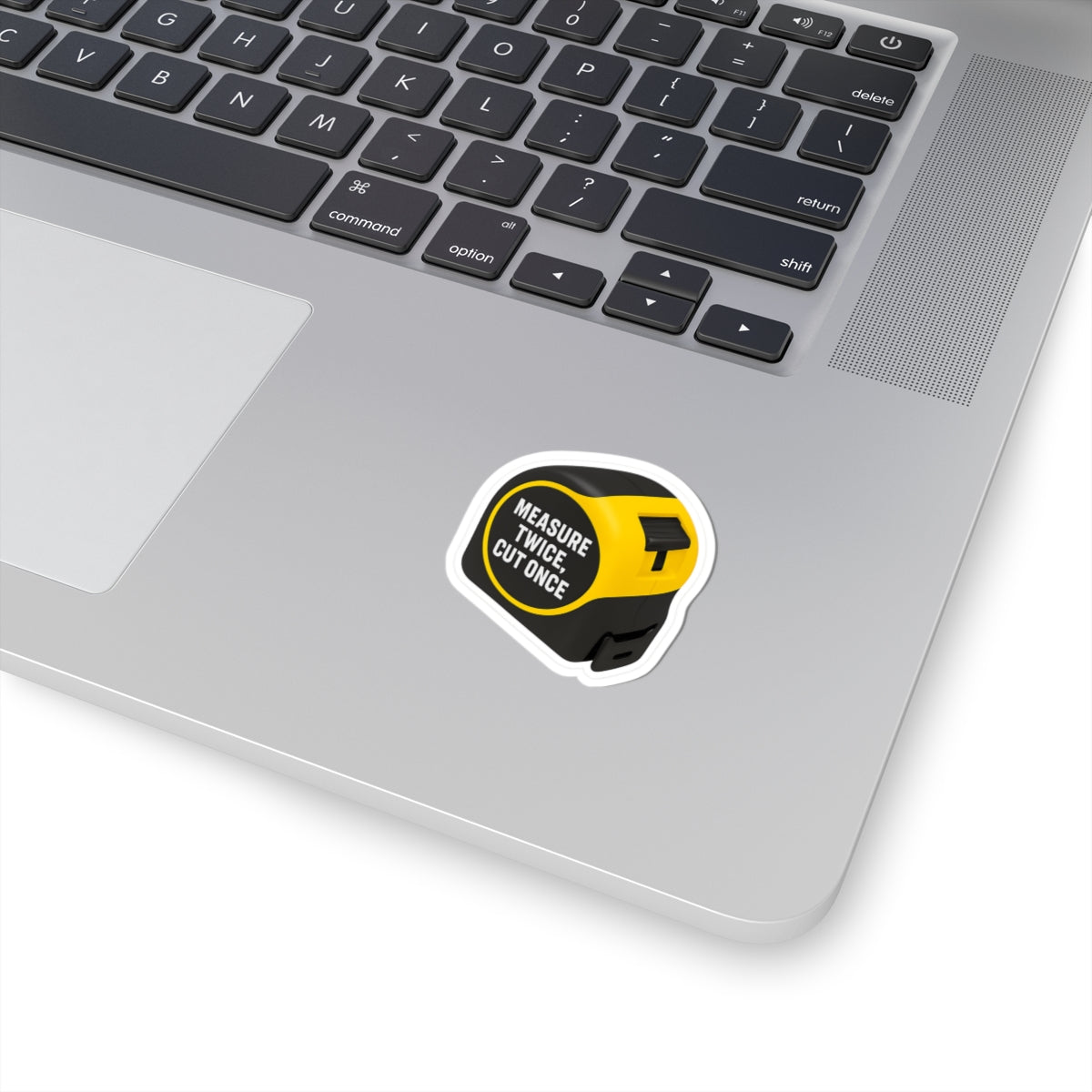 “Measure Twice, Cut Once” measuring tape kiss-cut sticker