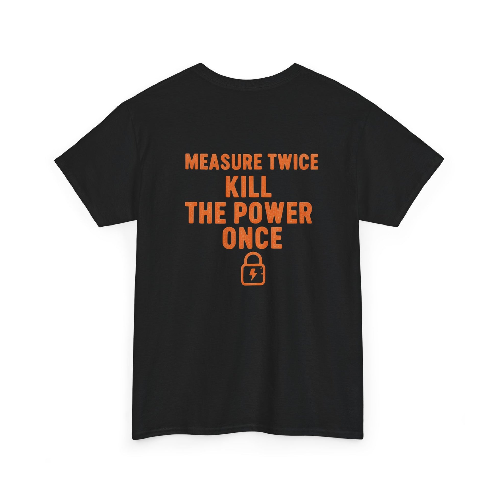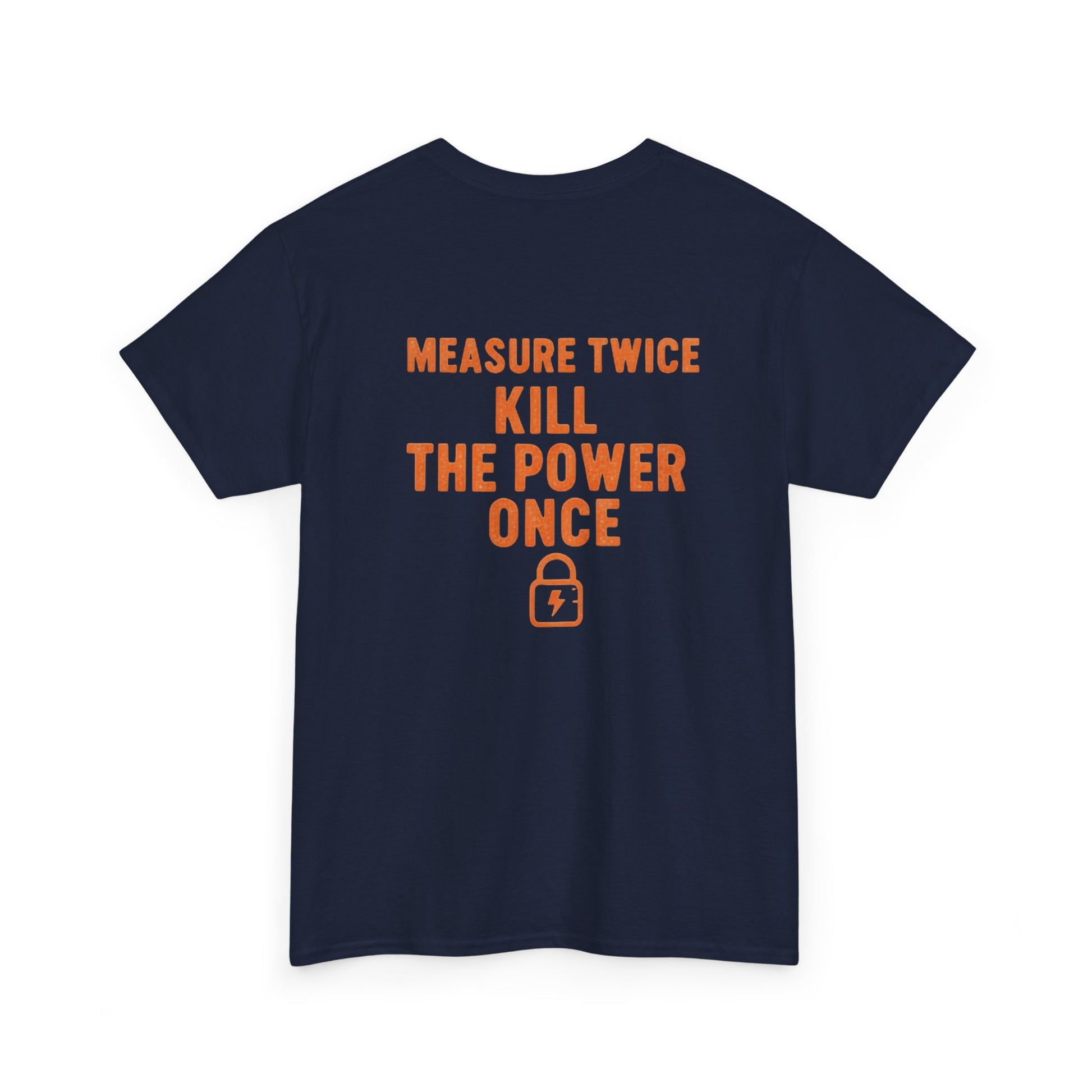 The “Measure Twice. Kill the Power Once.” tee is built around a rule that exists for a reason. It’s a reminder, a warning, and a mindset all in one. No shortcuts. No assumptions. Just doing it the right way before the switch ever gets flipped.
