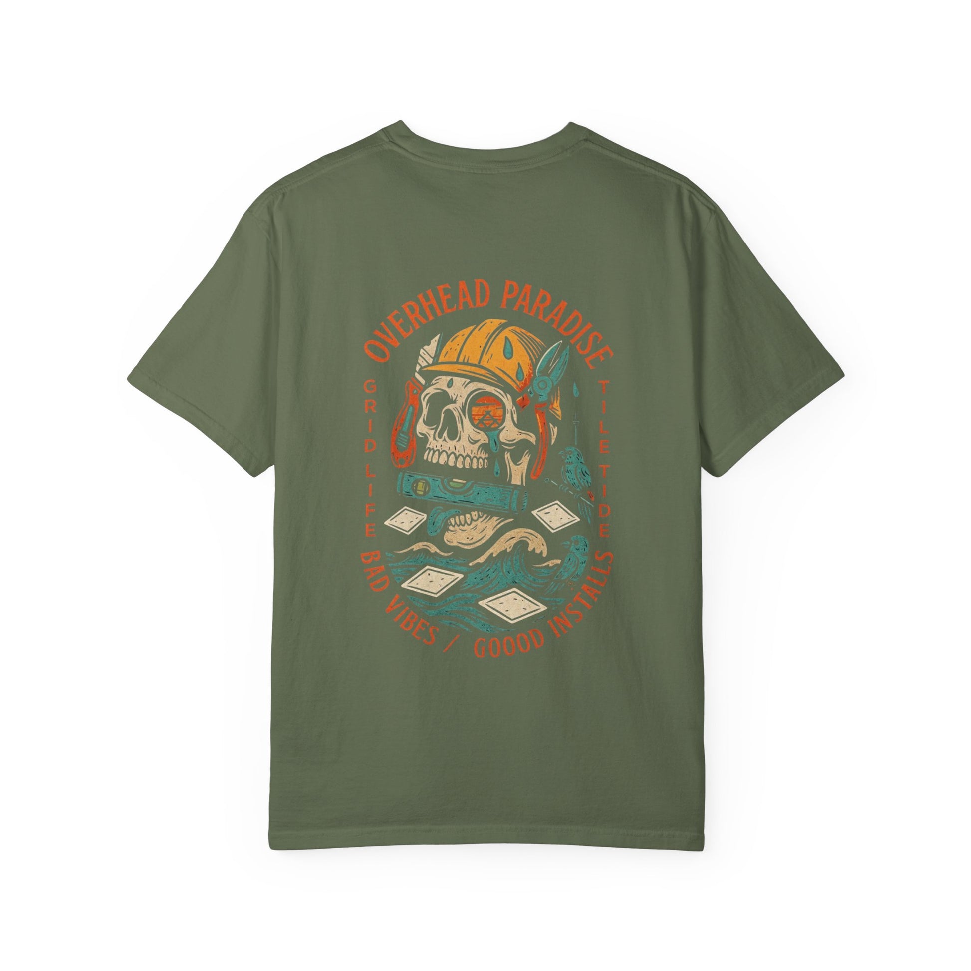 Ride the waves of the ceiling grid with the Overhead Paradise tee ππ. Inspired by vintage surf shirt designs, this bold graphic brings together grid life, tile tides, and good installs only. Perfect for tradespeople who know the grind but keep the vibes alive. Built for comfort, worn for style, and designed to stand out on and off the jobsite.
