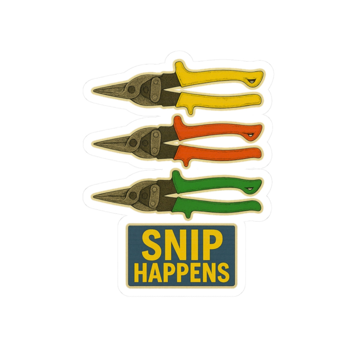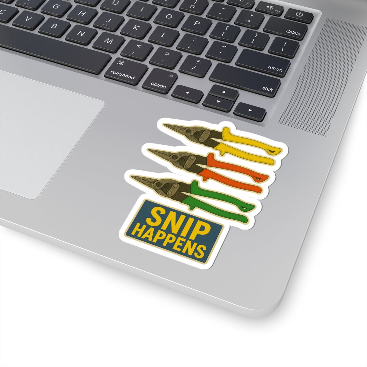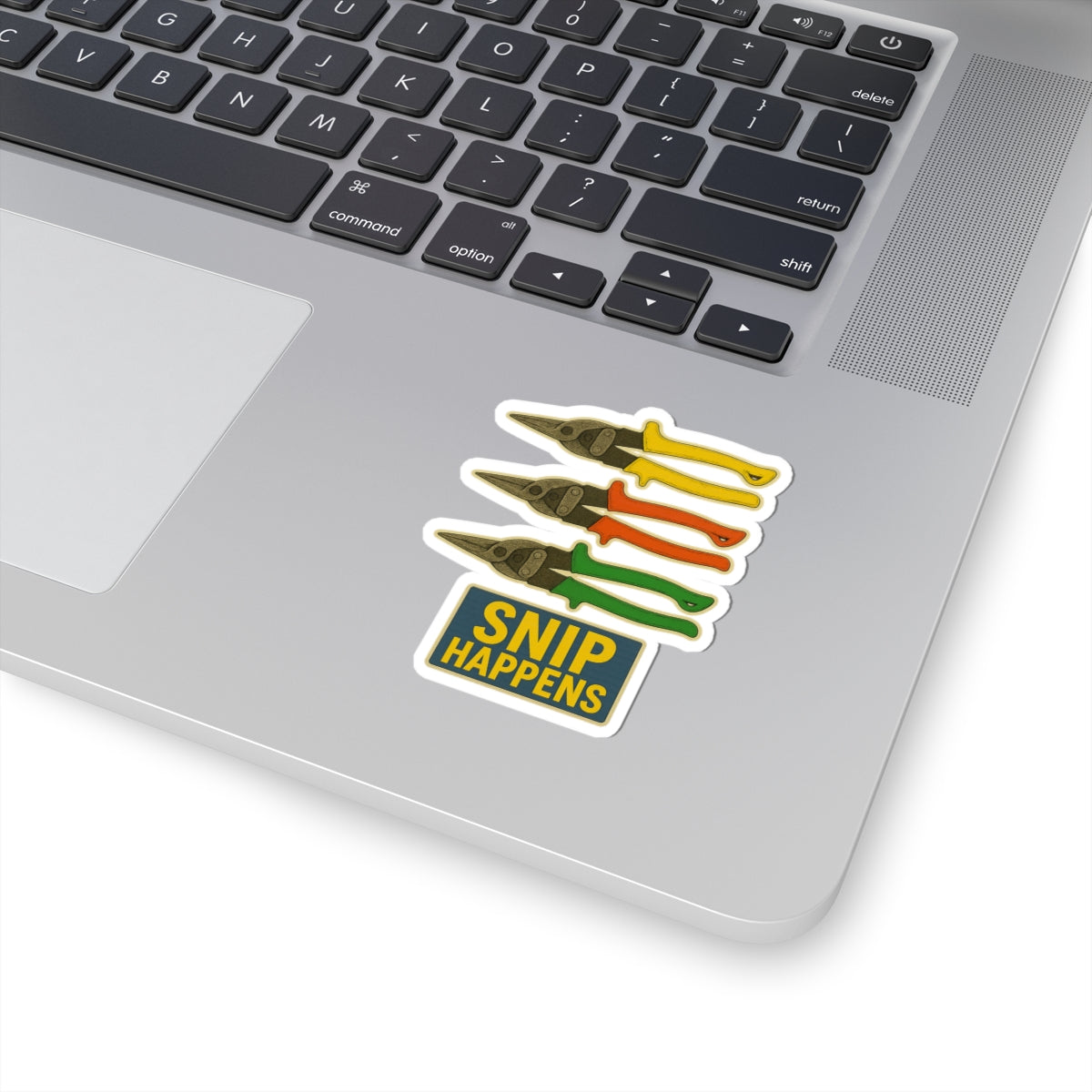 “Snip Happens” with reds, yellows, greens. - kiss-cut sticker